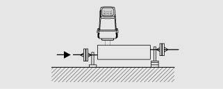 - Для компенсации веса расходомера и обеспечения надежных измерений независимо от внешних воздействий (например, вибраций ), преобразователь расхода должен быть смонтирован в жесткий трубопровод. Две опоры или держателя должны быть смонтированы симметрично и без натяжения в непосредственной близости от соединений с процессом.