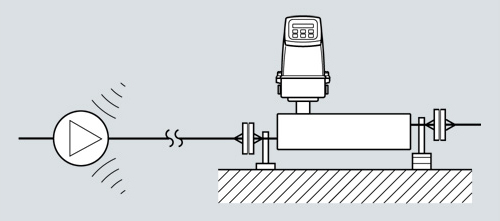 Расходомер по возможности всегда должен монтироваться на макс. удалении от компонентов, создающих механические вибрации в трубопроводной системе.