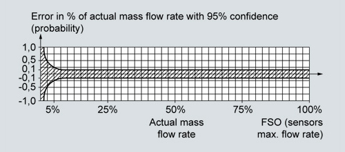 Погрешность расходомера для MASS 6000/MASS 2100 DI 1.5 до DI 40