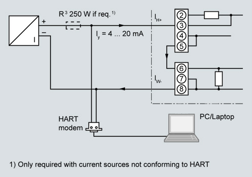 Электропневматический позиционер SIPART PS2, пример подключения для коммуникации через HART для 6DR52..