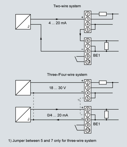 Приборы типа 6DR52.. и 6DR53.. могут работать по 2-х, 3-х и 4-х проводной схеме.