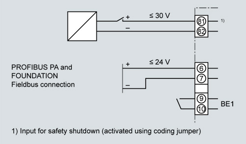 Электрическое подключение прибора PROFIBUS-PA (6DR55..) и приборов Foundation-Fieldbus (6DR56..)