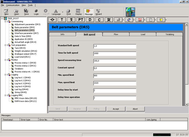 Программа позволяет производить ввод весов в эксплуатацию, не обладая познаниями в автоматизационной технике. При необходимости сервисного обслуживания техник может с помощью ПК проанализировать и протестировать процессы, происходящие внутри весов. Считывание информации из диагностического буфера SIWAREX FTC очень удобно при анализе событий.