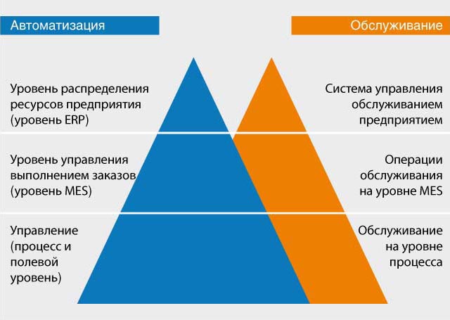 В прошлом функции обслуживания оборудования и информация располагались на отдельном уровне управления, независимом от производства. Теперь параллельно с управлением производственным процессом выполняются функции Asset Management, формирующие однородную информацию для сервисных служб предприятия. При таком подходе вспомогательные технические средства и программное обеспечение для решения задач обслуживания оборудования становятся не нужными..