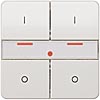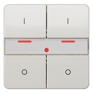 с полем для надписи, символами I/O, подсветкой для ориентации и индикацией состояния, |
