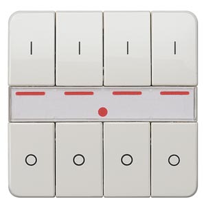 Кнопочный выключатель UP 246, 4-клавишный с полем для надписи, символами I/O, подсветкой для ориентации и индикацией состояния |