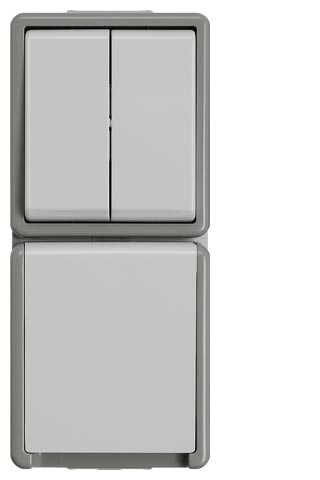 Комбинация двухклавишного выключателя и розетки с заземлением |
