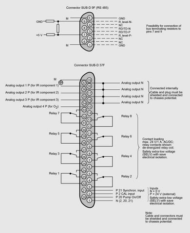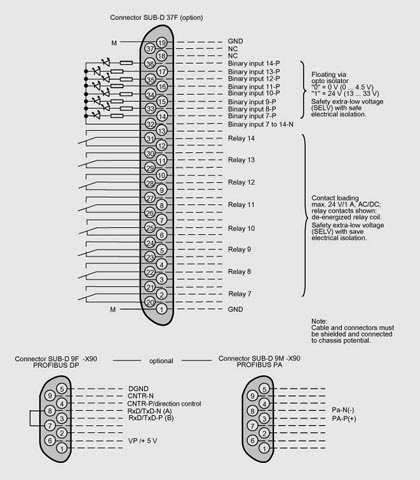 ULTRAMAT 23, pin assignment of the optional PROFIBUS interface board
