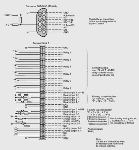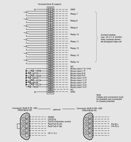 OXYMAT 6, field unit, connector and terminal assignment of the AUTOCAL board and PROFIBUS connectors