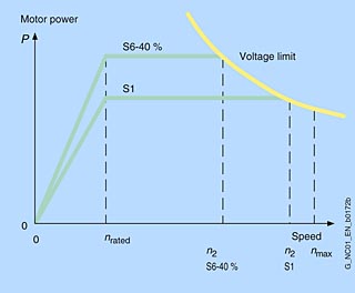 Attainable speeds for rated power in duty type in accordance with IEC 60034 1 |