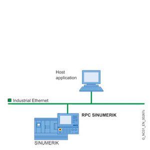 С помощью ПО RPC SINUMERIK возможна интеграция SINUMERIK810Disl/840Dslв производственную сеть пользователя. Через RPC SINUMERIK возможен обмен всеми важными данными станка (к примеру, состояния, количество изделий, ошибки, сообщения, программы ЧПУ и простои станка) между ЧПУ и PLC.