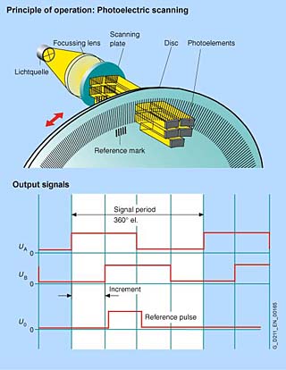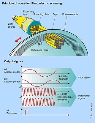 Представление функционирования инкрементального и абсолютного датчика положения взяты из каталога фирмы DR. JOHANNES HEIDENHAIN GmbH, Traunreut.