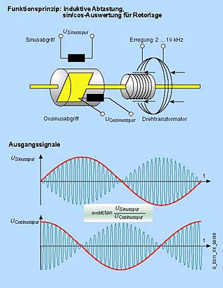 • Резольвер 2-полюсный: 1 sin/cos-сигнал на оборот