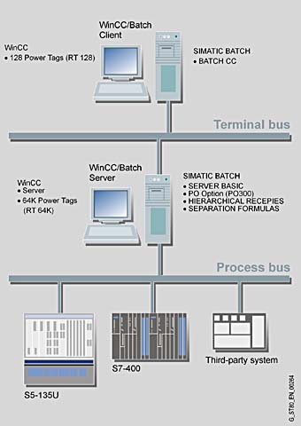 - WinCC/Batch может использоваться на станциях 1-пользовательских систем, а также в многопользовательских системах с архитектурой клиент/ сервер.