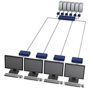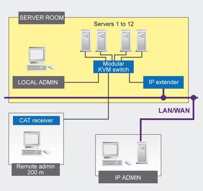 В комбинации KVM-IP extender Acxos и KVM switch (ControlCenter 4/n), администратору могут быть доступны сервера системы управления локально и удаленно. Доступ к заданному серверу может быть выполнен вплоть до уровня BIOS независимо от операционной системы. Если доступ через сеть невозможен, сервера могут быть доступны посредством ISDN.