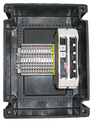 - Protective casing, Ex e with standard cable glands and terminal block; 170 x 227 x 131 mm (L x W x D)