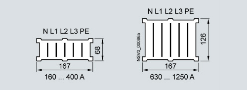 - Абсолютно надежное соединение всех 5 шин одновременно обеспечивается равномерным прижимным усилием . Быстрый монтаж до 400 A благодаря втычным зажимам, от 500 A до 1250 A - благодаря штифтовым зажимам.• Встроенный компенсатор расширения шин при нагреве.