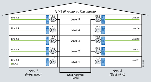 Другие системы, такие как оптоволокно или W-LAN, также могут быть использованы для связи отдельных зданий и для обмена телеграммами с групповыми адресами.