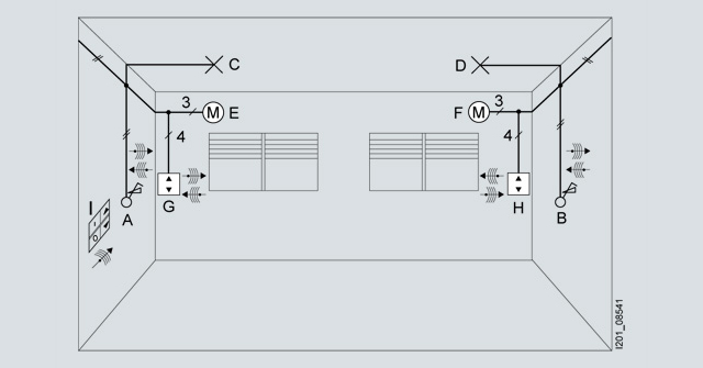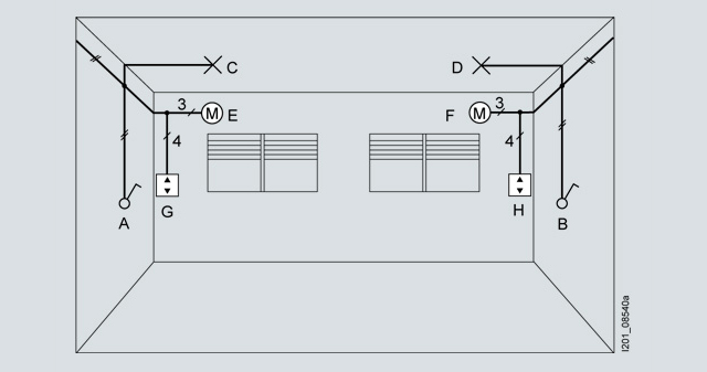 Example of a conventional installation with lighting and electrically operated shutters/blinds.