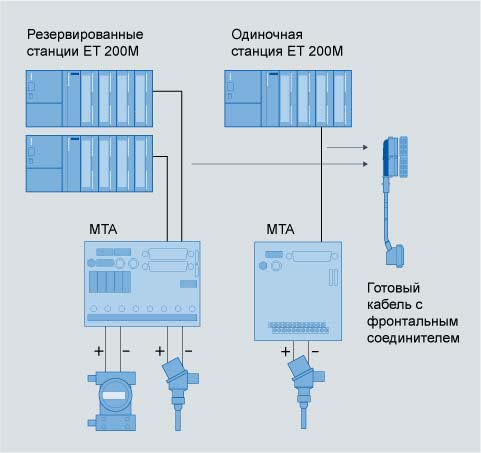 Терминальные модули SIMATIC PCS 7 MTA (маршальные терминальные сборки) позволяют простое, быстрое и надежное соединение полевых устройств, датчиков и позиционеров к модулям распределенной периферии ET 200M. Их можно использовать для сокращения стоимости, уменьшения работ по разводке кабеля и пусконаладке, предотвращение ошибок подключения.