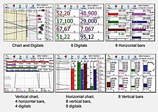 Может быть сконфигурировано до 20 (SIREC D300) и до 30 (SIREC D400) экранов, отображающих различные комбинации графиков, гистограмм и цифровых показаний, См. 4 и, соответственно, 6 (SIREC D300 и SIREC D400) примеров ниже.