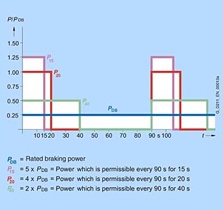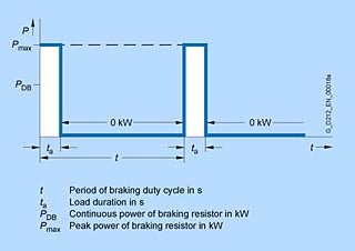 При выборе блоков торможения (Модуля Торможения и тормозного резистора) кроме средней тормозной мощности должна учитываться и пиковая тормозная мощность.