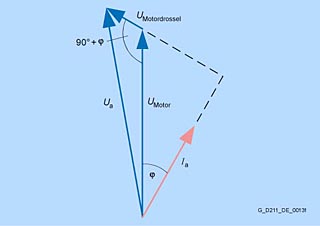 Снижением напряжения, вызванным реактором двигателя, обычно можно принебречь для выходных частот в 60 Гц и ниже. Падение напряжения uk в блоке в данном случае будет в пределах от 1% до 4% при номинальном токе и частоте в 50 Гц. При cos равном 0,86 и выходной частоте в 50 Гц, напряжение в двигателе с реактором будет ниже приблизительно на 2% по сравнению с системами без реактора двигателя.