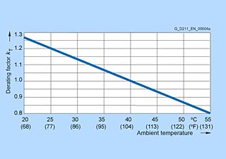 Для расчёта допустимого выходного тока или мощности, коэффициенты снижения номинальных значений должны быть умножены на эффекты, описанные выше. Коэффициент снижения номинального значения тока kI как функция высоты установки может быть измерен при помощи коэффициента снижения номинального значения внешней температуры kT. Если результат умножения коэффициента kT на коэффициент kI больше 1, тогда расчёт должен базироваться на номинальном токе Irated или Iratedf. Если результат <1, тогда для расчёта максимально допустимого значения непрерывного тока он должен быть умножен на значение номинального тока Irated или Iratedf. Рассчитанный данным способом для получения результирующего значения коэффициент снижения номинальных значений k = kf kT kI должен применяться ко всем значениям тока (Irated,IH, IL) в заданном рабочем цикле.