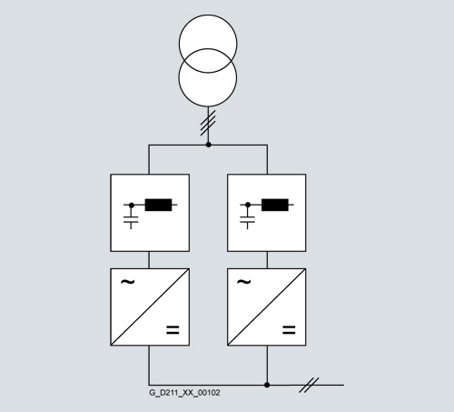 В соответствии с данным определением, приведённым в EN 60146 1, P – э то полная мощность основной гармоники преобразователя. Sc – это мощность короткого замыкания при подаче электропитания в случае короткого замыкания на контактах U1, V1 и W1. Так как на практике омическими составляющими импедансов принебрегают, то Zn j Xn