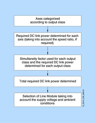 Используя широтно-импульсную модуляцию, Силовые Модули или Модули Двигателей генерируют из напряжения DC напряжение переменного тока, подаваемое подключённому двигателю. Величина постапающего напряжения DC определяется линейным напряжением и, в случае Модуля Двигателя, Модулем Линии и, таким образом, максимально допустимым выходным напряжением (смотрите описание компонентов). Скорость и нагрузка подключённого двигателя определяют требуемое напряжение двигателя. Максимально возможное выходное напряжение должно быть больше или равно требуемому напряжению двигателя; возможно, потребуется выбрать двигатель с другой обмоткой.