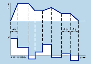 Нагружающий момент устанавливается для каждого промежутка времени. Вдобавок к нагружающему моменту, средний момент инерции нагрузки и момент инерции двигателя должны приниматься во внимание для ускорения. Иногда необходим момент вращения трения, который работает в противоположном направлении движения.