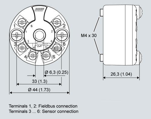 SITRANS TH400, размеры в мм (дюймах) и соединения