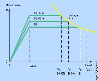 S6: Continuous duty with intermittent loading and a relative duty factor of 60 % (S6-60 %) or 40 % (S6-40 %) with a maximum duty cycle time of 10 minutes.
