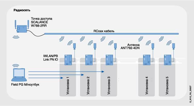 Одна точка доступа SCALANCE W788-1RR способна поддерживать обмен данными в реальном масштабе времени не более чем с 50 мобильными станциями. Короткие времена цикла обмена данными и операции быстрого переключения поддерживаются только точками доступа, оснащенными протяженными антеннами на основе IWLAN RCOax кабеля. Мобильные станции должны иметь интерфейс, позволяющий поддерживать обмен данными с точкой доступа через IWLAN RCoax кабель. Например, таким интерфейсом оснащены модули IWLAN/PB Link PN IO.