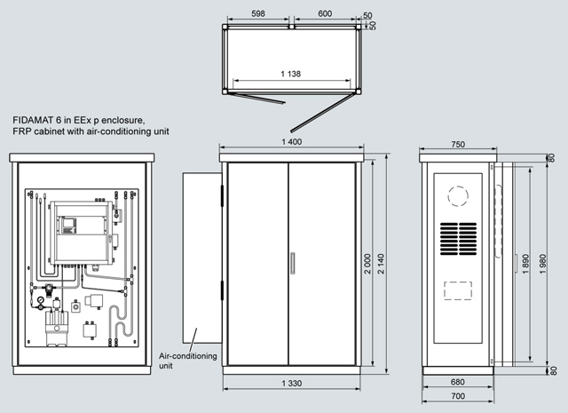 FIDAMAT 6 in standard protective cabinet, dimensions in mm