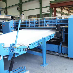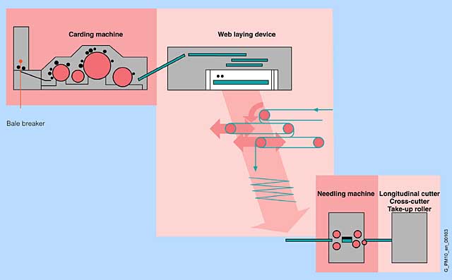 Раскладчик нетканого полотна или крестообразный раскладчик расположен между кремпельной и игольной машиной в установке для производства нетканого полотна. Поступающее из кремпельной машины волокно редко имеет необходимую для применения массу на единицу площади. Поэтому друг на друга крестообразно кладутся столько слоев, сколько необходимо для конечного применения.