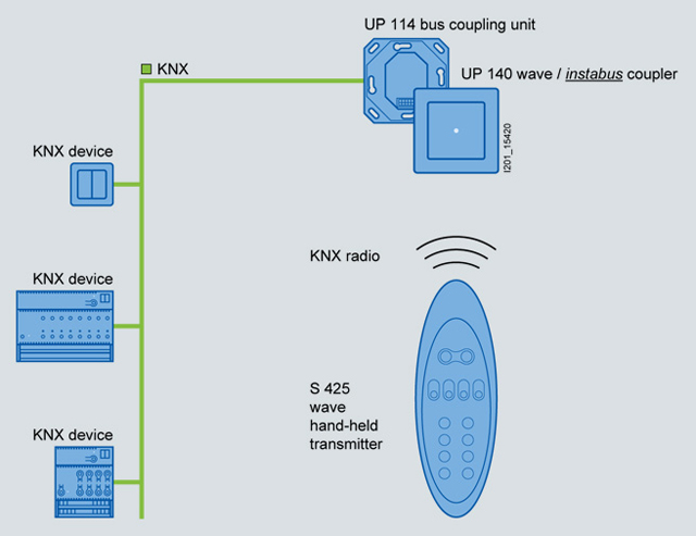In such cases, the GAMMA wave wireless system is the ideal solution. The simplest way to integrate GAMMA wave in a GAMMA instabus system is to use the UP 140 wave coupler/instabus.