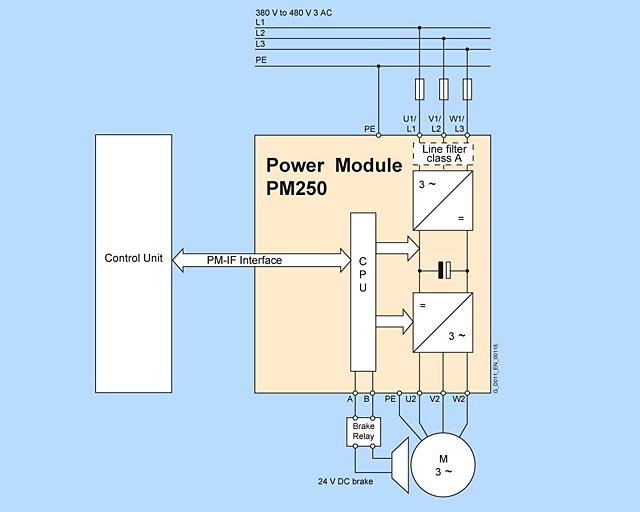 Следующая диаграмма показывает расположение блока питания РМ250 с дополнительным линейным фильт-ром класса В как основного компонента.