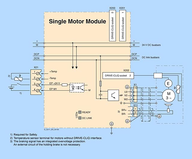 Однодвигательные модули связаны по DRIVE-CLiQ с модулем управления.