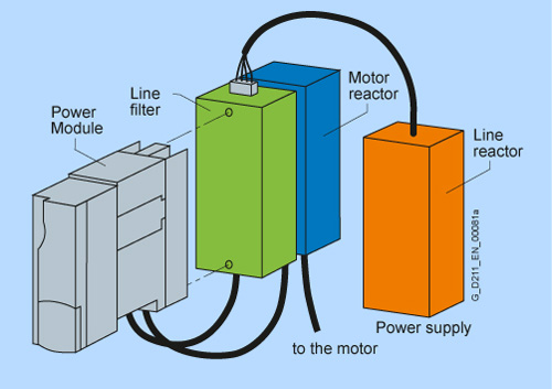 Для конфигураций, включающих более двух базовых компонентов, например сетевой дроссель + выходной дроссель + тормозное сопротивление, индивидуальные компоненты должны устанавливаться на PM340. В данной сборке входной и выходной дроссели долны устанавливаться перед PM340 и тормозное сопротивление отдельно.
