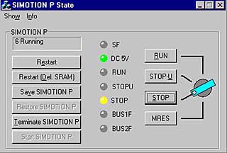 Программное обеспечение ядра SIMOTION P не имеет естественно никаких кнопок или переключателей для изменения ее рабочих состояний (ПУСК / ОСТАНОВ). Эту задачу решает монитор программного обеспечения (смотри рис. программное обеспечение - монитор), который обслуживается при помощи клавиатуры или мыши.