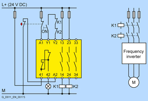 Данная функция позволяет предотвратить случайный запуск привода в соответствии с требованиями EN 60204-1, Часть 5.4. Функция «Безопасное отключение крутящего момента» позволяет остановить импульс управления привода и прервать подачу питания на двигатель (в соответствии со стандартом EN 60204-1 категории останова 0). Крутящий момент двигателя отключается. Состояние контролируется встроенными системами привода.