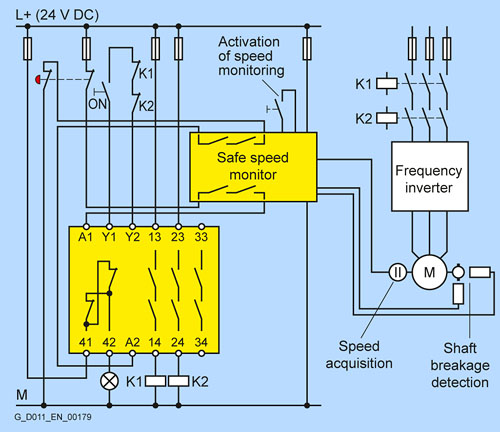 Функции мониторинга в каждом канале для мониторинга работают по принципу, при котором заданный статус должен иметь преимущество, прежде чем выполнится каждое действие, после чего будет выдано особое подтверждение. Если ожидания по поводу каналов для мониторинга не подтвердятся, привод останавливается (два канала), после чего выдается соответствующее сообщение.
