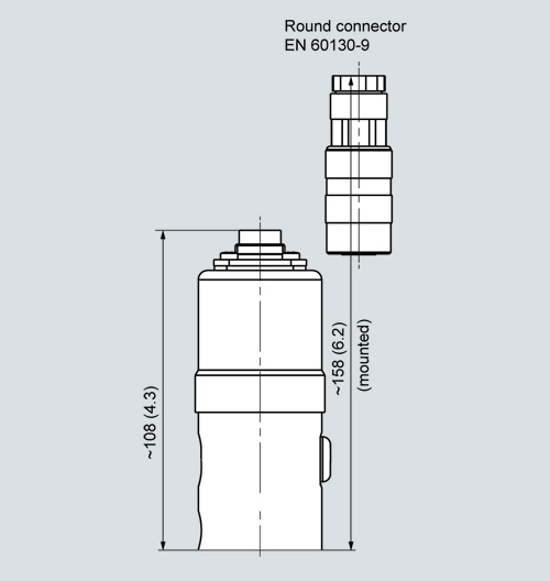 SITRANS P250 differential pressure transmitter with round connector to EN 60130-9, dimensions in mm (inch)
