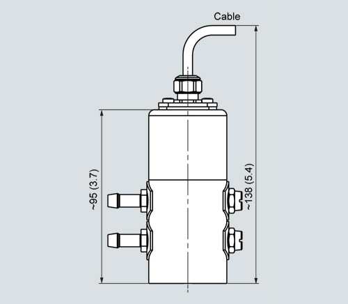 SITRANS P250 differential pressure transmitter with cable, dimensions in mm (inch)