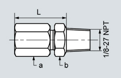Pipe union with screw-in nipple for outer pipe (stainless steel 1.4305/AISI 303) |