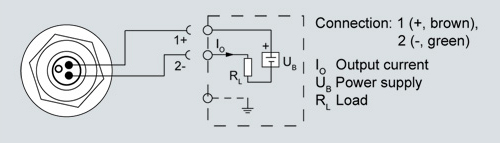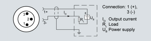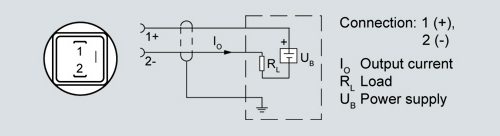 Connection with current output 4 ... 20 mA and round connector