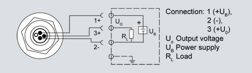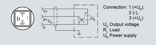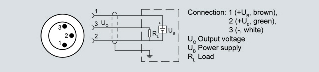 Connection with voltage output 0 ... 5 V DC (0 ... 10 V DC) and round connector