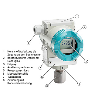 The rating plate (7, Figure "Front view") with the Order No. is located on the side of the housing. The specified number together with the ordering information provide details on the optional design details and on the possible measuring range (physical properties of built-in sensor element).