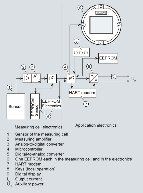 - The measuring cell-specific data, the electronic data and the parameterization data is held in two EEPROMs. One EEPROM is incorporated into the measuring cell electronics, the other is incorporated into the application electronics.